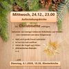 Heiligabend, Mittwoch, 24. Dezember, 23.00 und Dreikönig, Dienstag, 06.Jänner, 10.30